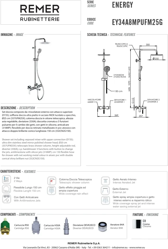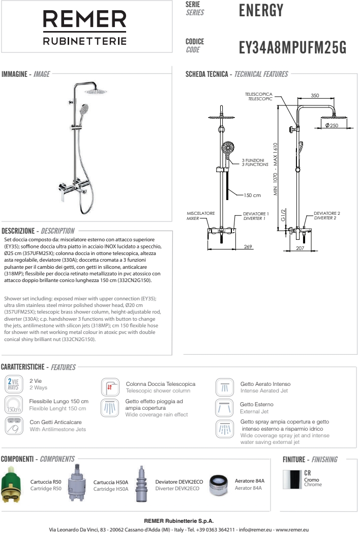 _Code EY34A8MPUFM20G with Ø20 cm shower head(357UFM20X)_Code EY34A8MPUFM30G with Ø30 cm shower head (357UFM30X)
