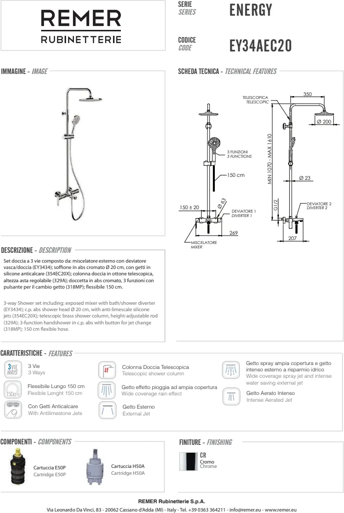 3-way Shower set including: exposed mixer with bath/shower diverter (EY3434)