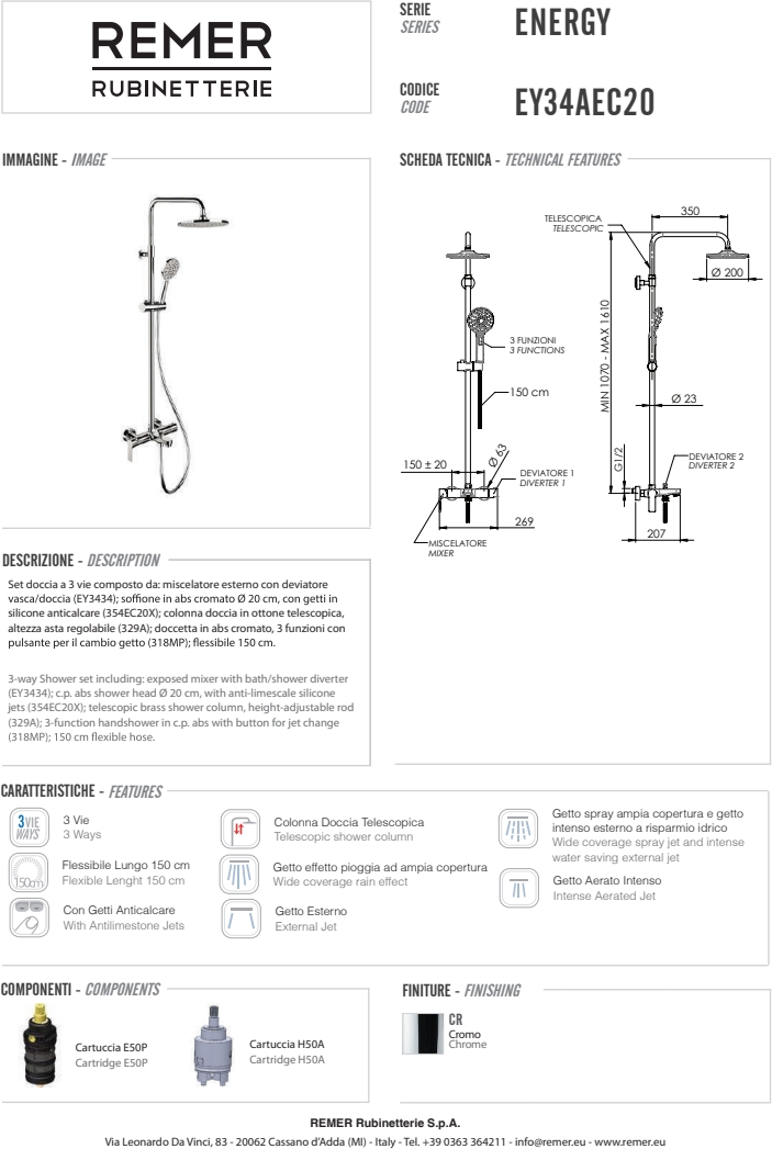 Итальянский бренд Remer Rubinetterie более 50 лет специализируется на выпуске смесителей, душевых систем и аксессуаров для ванной комнаты и кухни. Главная особенность продукции Remer — сочетание классического итальянского дизайна и современных технологий. В отличие от многих конкурентов, компания выпускает полный цикл изделий: от литейного производства латунных корпусов до хромирования и финальной сборки. Это обеспечивает стабильное качество, долговечность и оптимальную цену для европейской сантехники премиум-класса.