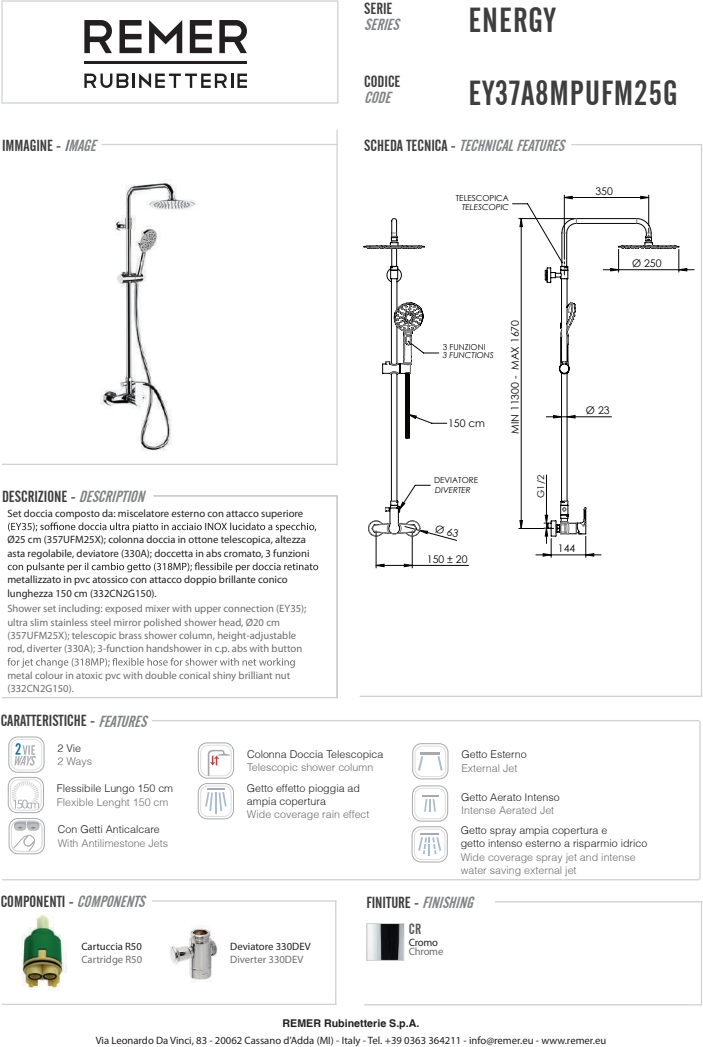 _Code EY37A8MPUFM20G with Ø20 cm shower head(357UFM20X)_Code EY37A8MPUFM30G with Ø30 cm shower head (357UFM30X)