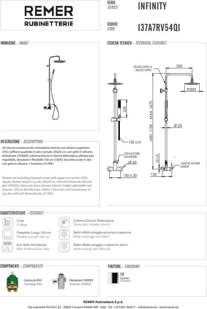 Итальянский бренд Remer Rubinetterie более 50 лет специализируется на выпуске смесителей, душевых систем и аксессуаров для ванной комнаты и кухни. Главная особенность продукции Remer — сочетание классического итальянского дизайна и современных технологий. В отличие от многих конкурентов, компания выпускает полный цикл изделий: от литейного производства латунных корпусов до хромирования и финальной сборки. Это обеспечивает стабильное качество, долговечность и оптимальную цену для европейской сантехники премиум-класса.