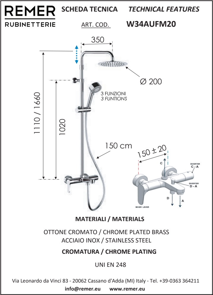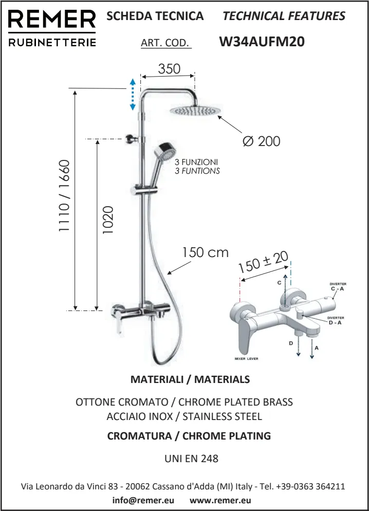 Итальянский бренд Remer Rubinetterie более 50 лет специализируется на выпуске смесителей, душевых систем и аксессуаров для ванной комнаты и кухни. Главная особенность продукции Remer — сочетание классического итальянского дизайна и современных технологий. В отличие от многих конкурентов, компания выпускает полный цикл изделий: от литейного производства латунных корпусов до хромирования и финальной сборки. Это обеспечивает стабильное качество, долговечность и оптимальную цену для европейской сантехники премиум-класса.