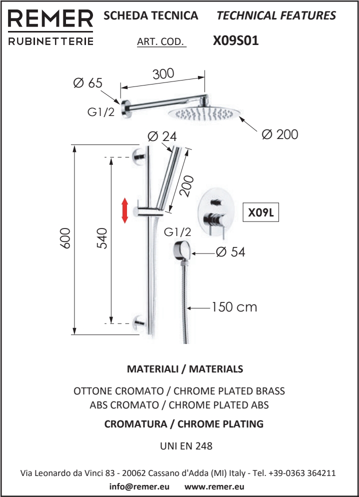 _Code X09S01UFM25 with Ø 25 cm shower head (357UFM25X)_Code X09S01UFM30 with Ø 30 cm shower head (357UFM30X)