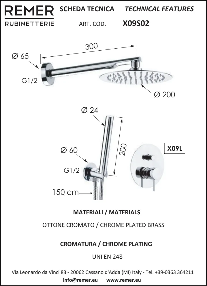 _Code X09S02UFM25 with Ø 25 cm shower head (357UFM25X)_Code X09S02UFM30 with Ø 30 cm shower head (357UFM30X)