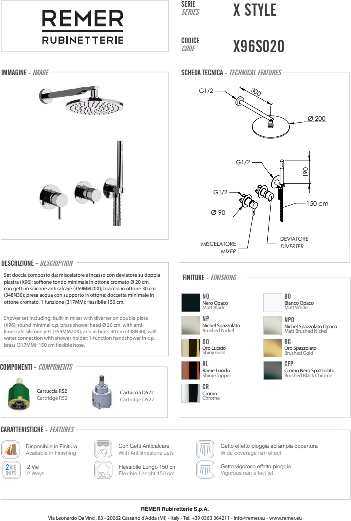 Итальянский бренд Remer Rubinetterie более 50 лет специализируется на выпуске смесителей, душевых систем и аксессуаров для ванной комнаты и кухни. Главная особенность продукции Remer — сочетание классического итальянского дизайна и современных технологий. В отличие от многих конкурентов, компания выпускает полный цикл изделий: от литейного производства латунных корпусов до хромирования и финальной сборки. Это обеспечивает стабильное качество, долговечность и оптимальную цену для европейской сантехники премиум-класса.