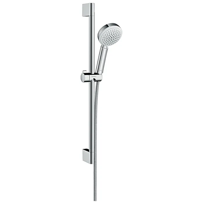 HG Crometta Vario Душевой набор: штанга 650mm, ручной душ 100, 4jet (Rain, обычная, Shampoo, массажная), EcoSmart, шланг, цвет: белый/хром