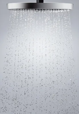Классическое решение основано на встраиваемом смесителе и дополнено верхним душем.
