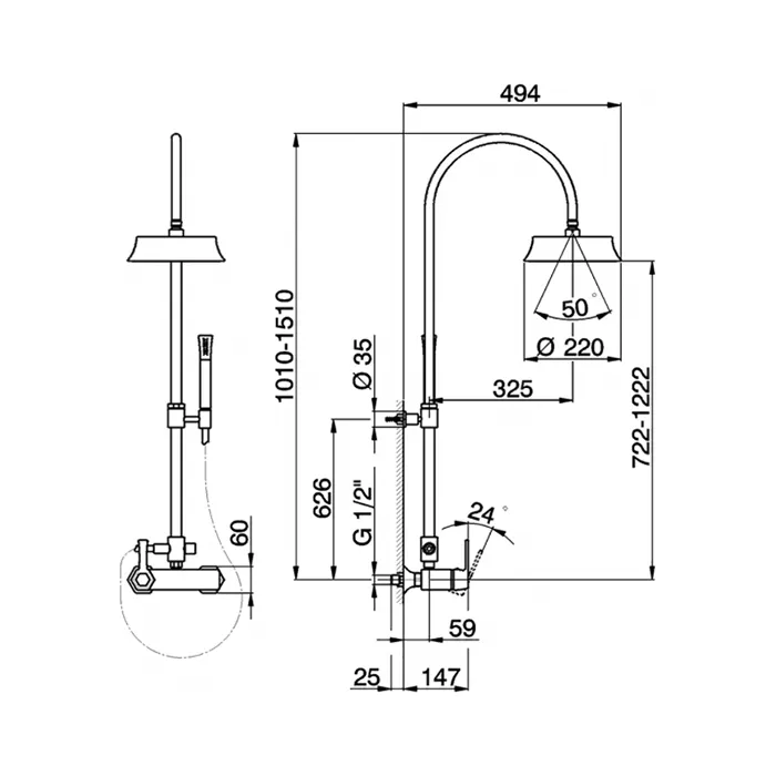 Настенная душевая система Cisal Cherie однорычажный смеситель для душа,верхний душ,ручной душ с держателем и шлангом, хром/черный матовый CH0040546T
