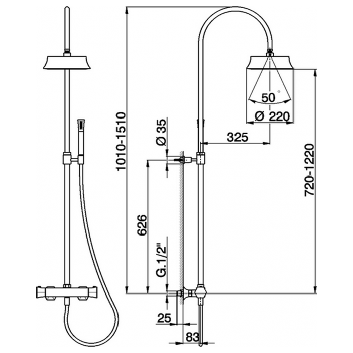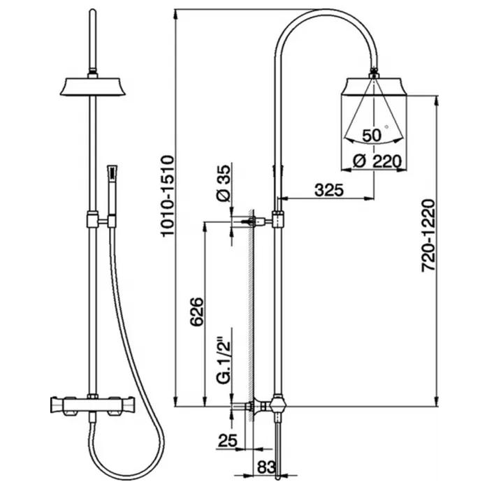 Настенная душевая система Cisal Cherie термостатический смеситель для душа,верхний душ,ручной душ с держателем и шлангом, золото CEC8001024