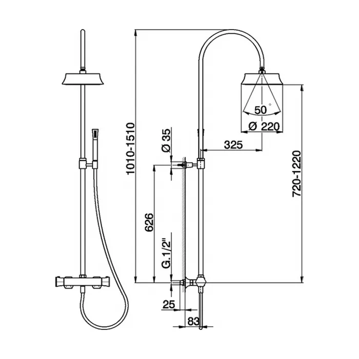 Настенная душевая система Cisal Cherie термостатический смеситель для душа,верхний душ,ручной душ с держателем и шлангом, хром CEC8001021