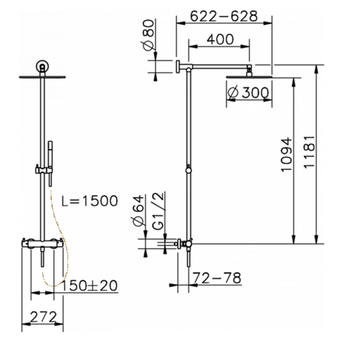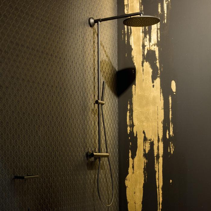 Настенная душевая система Cisal Less New термостатический смеситель для душа,верхний душ,ручной душ с держателем и шлангом, черный матовый LNC7801N40