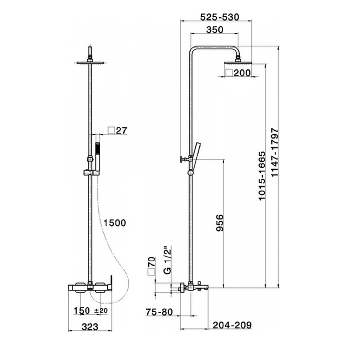 Настенная душевая система Cisal Roadster смеситель для ванны,верхний душ, ручной душ с держателем и шлангом, хром RR00412021