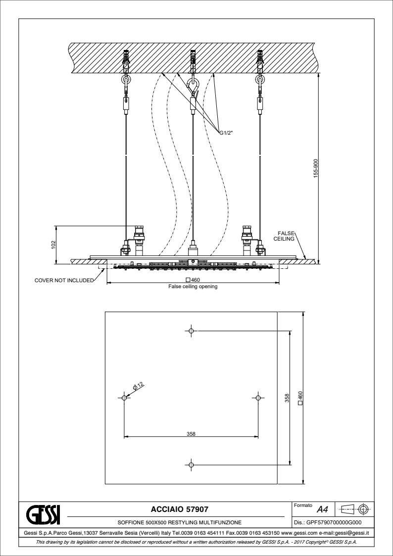 Встраиваемая в потолок душевая система Gessi Minimalistic Shower 57907.238 Mirror Steel