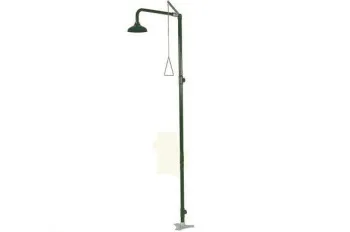Аварийный душ предназначен для заводов, фабрик, лабораторий, где есть риск нанесения здоровья рабочему персоналу от огня, кислот, и прочих химических или радиоактивных реагентов. Приводится в действие с помощью ручки.