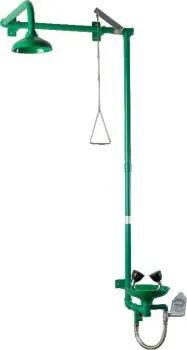 Аварийный душ для установки над дверью редназначен для заводов, фабрик, лабораторий, где есть риск нанесения здоровья рабочему персоналу от огня, кислот, и прочих химических или радиоактивных реагентов. Приводится в действие с помощью треугольного рычага.