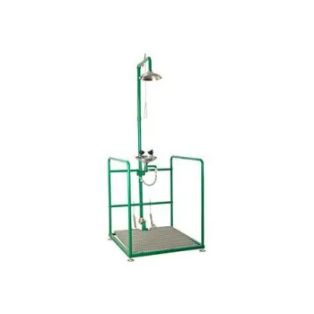 Аварийный душ с раковиной для промывки глаз из нержавеющей стали предназначен для заводов, фабрик, лабораторий, где есть риск нанесения здоровья рабочему персоналу от огня, кислот, и прочих химических или радиоактивных реагентов. Приводится в действие с помощью треугольного рычага или напольной педали.
