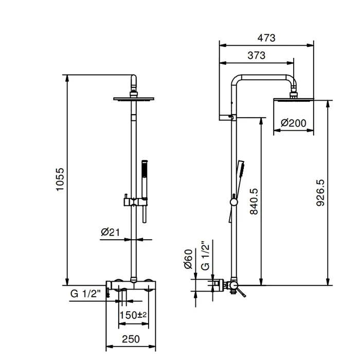 Душевая стойка Fantini Nostromo с верхнем душем 20см., с ручным душем и смесителем, черный матовый 86 13 8130