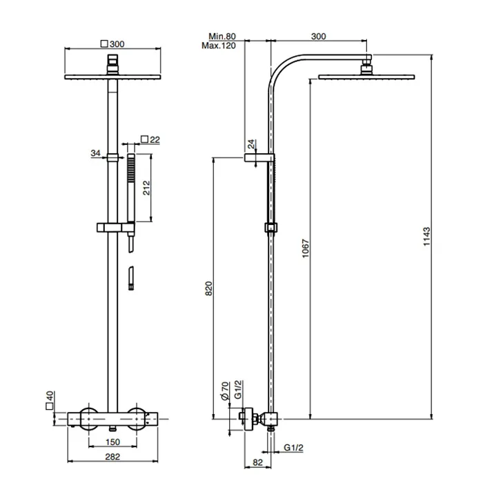 Душевая стойка Fima Carlo Frattini Colonne Doccia верхний душ 30х30, с термостатическим смесителем, держателем и ручным душем, хром F4265N/Q305CR