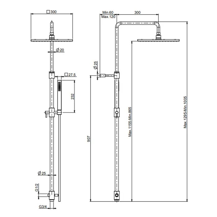Душевая стойка с верхним душем Fima Carlo Frattini Wellness 300х300 и душевым комплектом, хром F2200LCR