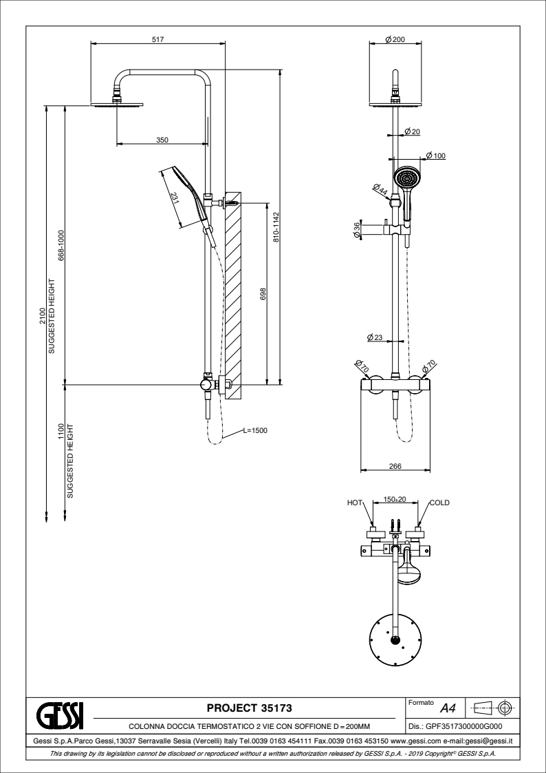 Душевой гарнитур Gessi Minimalistic shower 35173.299 Matte Black