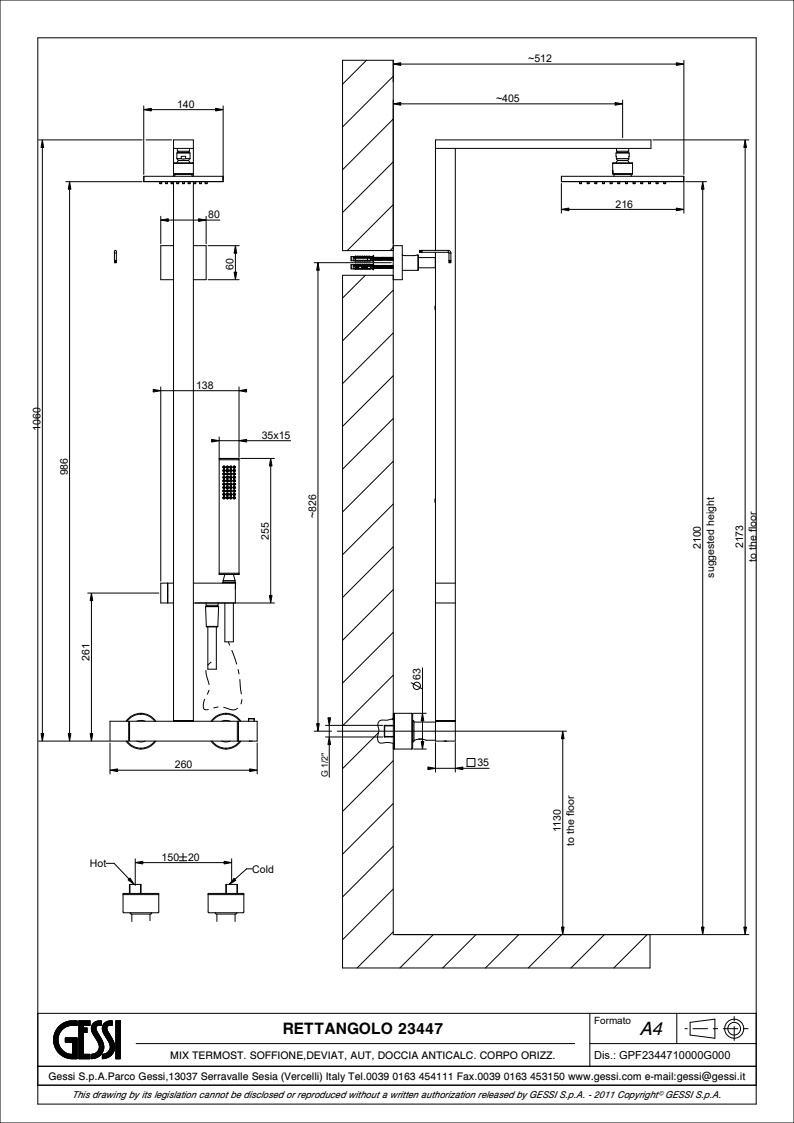 Душевой гарнитур Gessi Rettangolo 23447.149 Finox Brushed Nickel