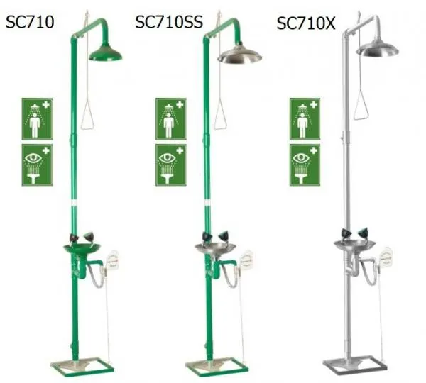Комбинированный аварийный душ из оцинкованной стали с педалью управления и раковиной для промывки глаз, чаши из полипропилена, SC710