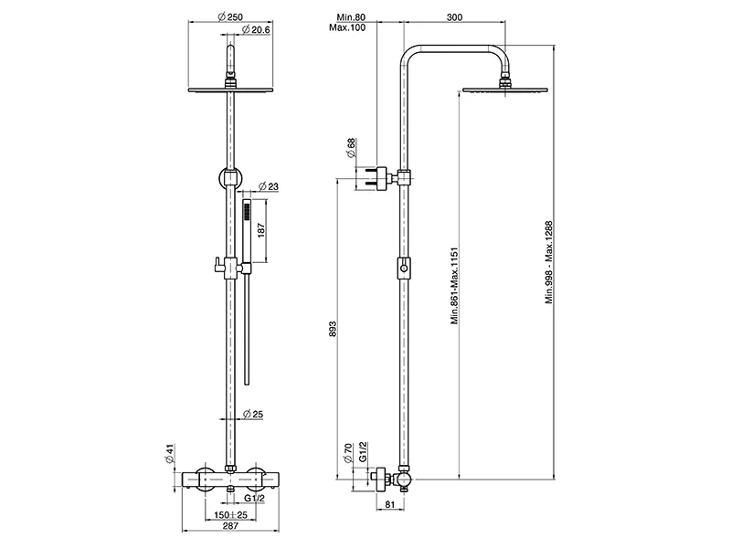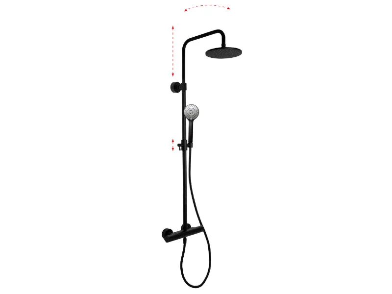 Душевая стойка с термостатическим смесителем с телескопической душевой колонной FIMA CARLO FRATTINI F4285/R259NS, цвет черный матовый. Верхний душ диаметром 250 мм, регулируемая высота, ручной душ с защитой от известковых отложений, держатель для ручного душа, регулируемый по высоте, гибкий шланг хромалюкс 1500 мм, переключатель на ручке, холодное тело смесителя.