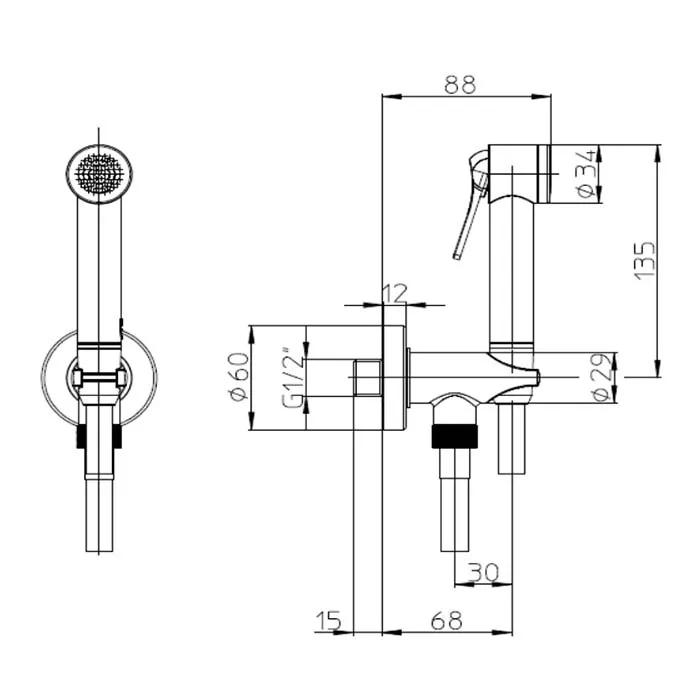 Bossini Apice Гигиенический душ, в комплекте с держателем, подводом воды и шлангом 125см., цвет: чер