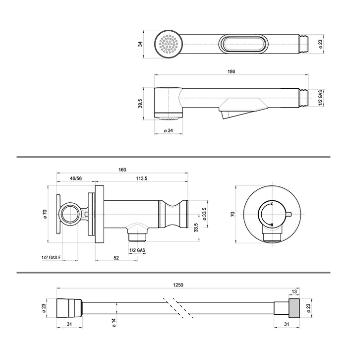 Bossini Macan Гигиенический душ с прогрессивным смесителем, лейка пластиковая, шланг Cromolux, цвет: