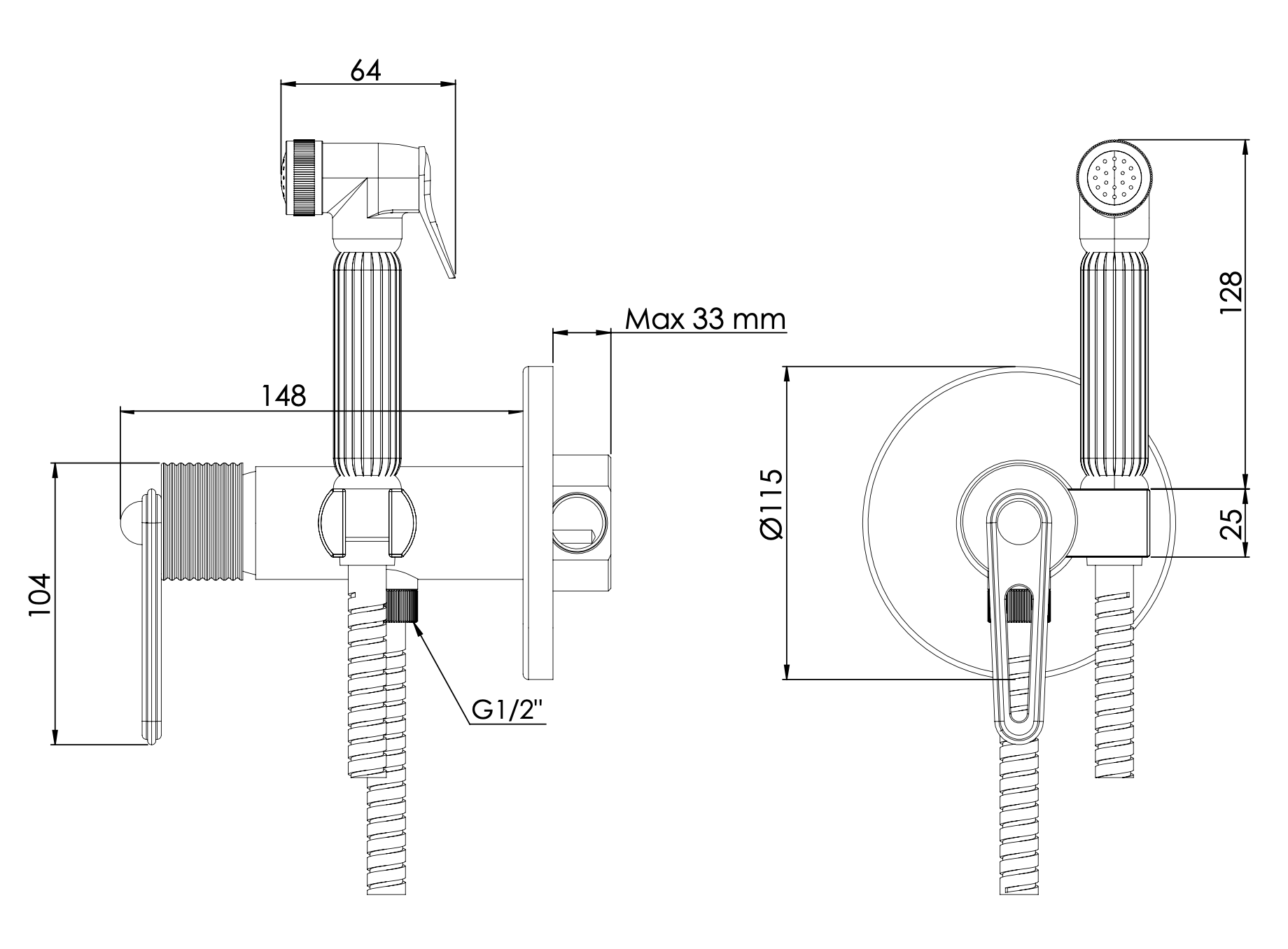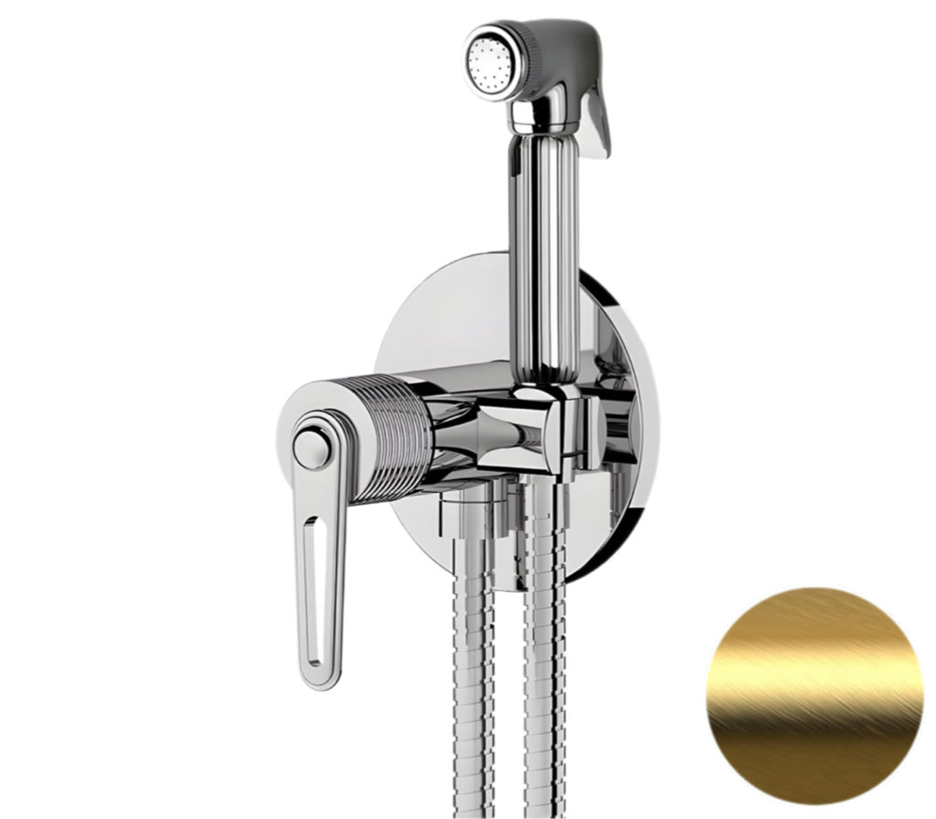 Гигиенический душ со смесителем Daniel Brooklyn BY645DCZDP, золото брашированное