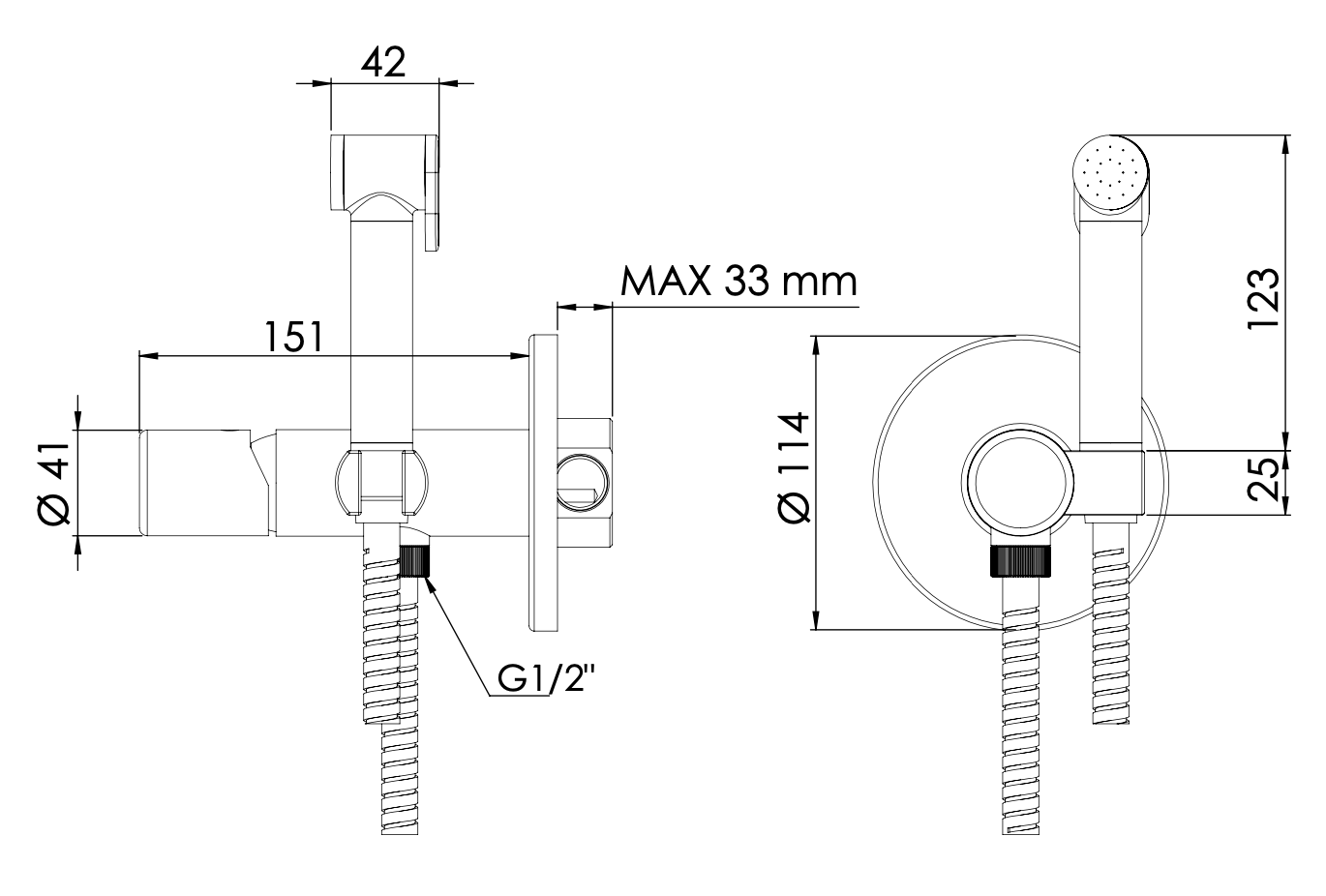 Гигиенический душ со смесителем Daniel Trilogy TG6454DCDP, золото брашированное