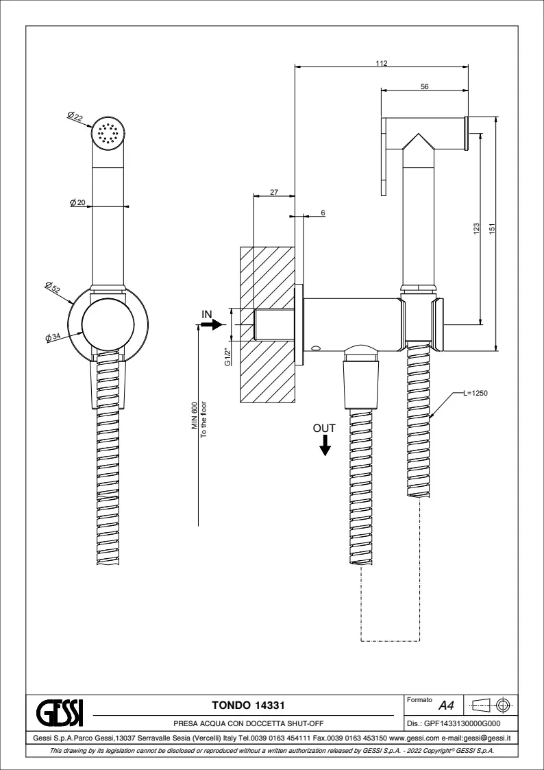 Гигиенический душ Gessi 14331.080 Gold CCP