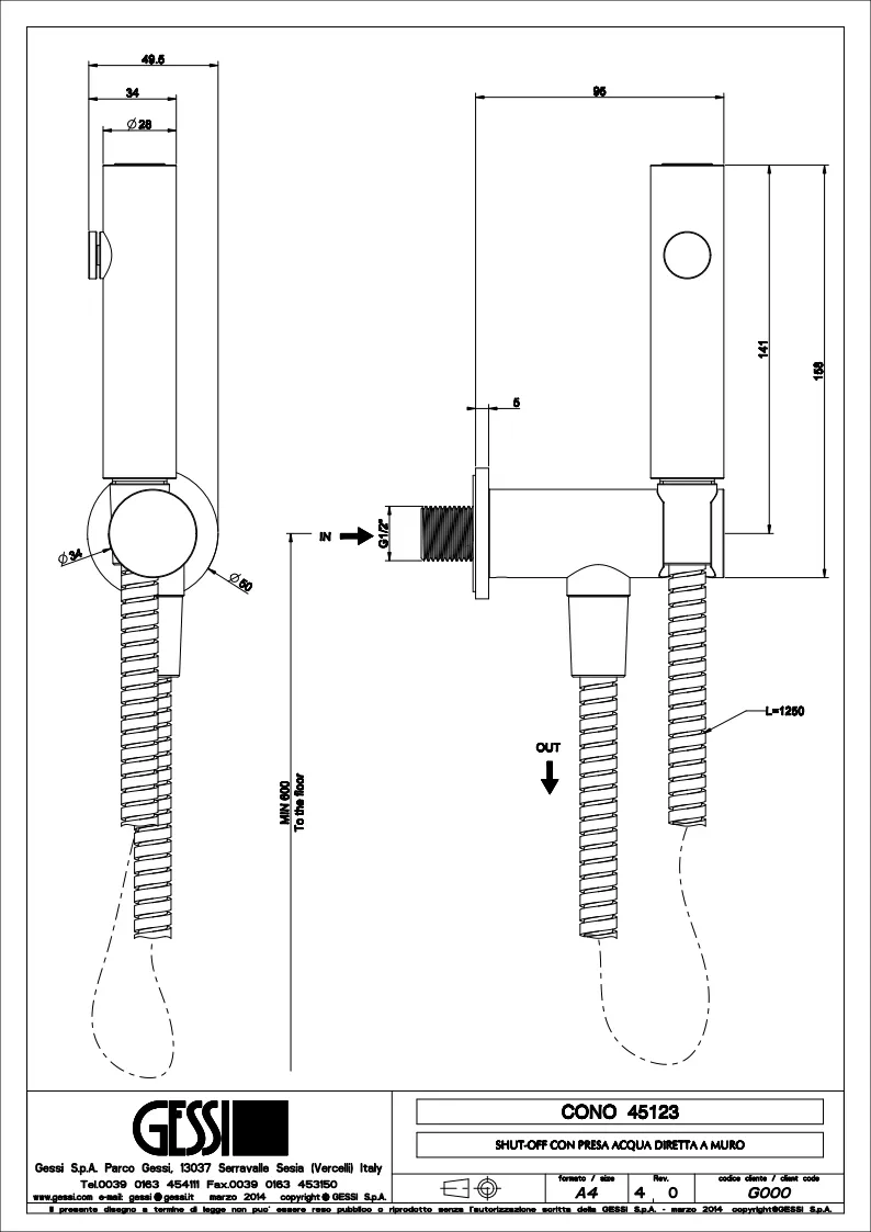 Гигиенический душ Gessi 45123.030 Copper PVD