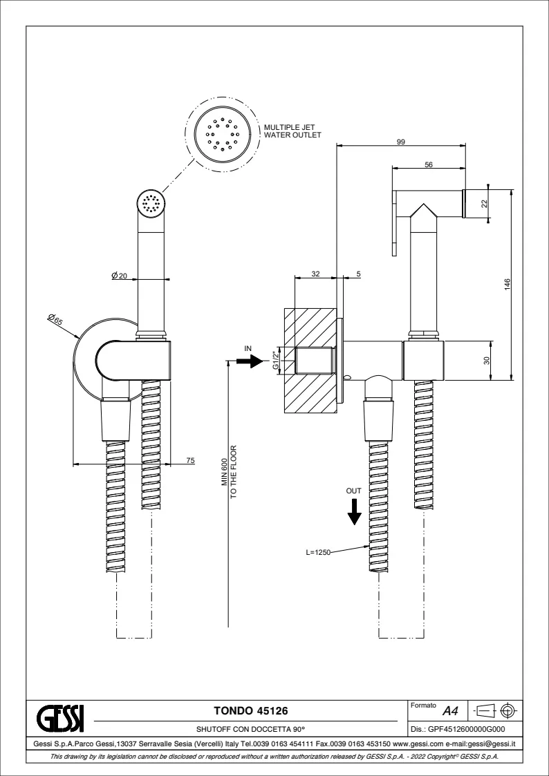 Гигиенический душ Gessi Origini 45126.727 Brass Brushed PVD