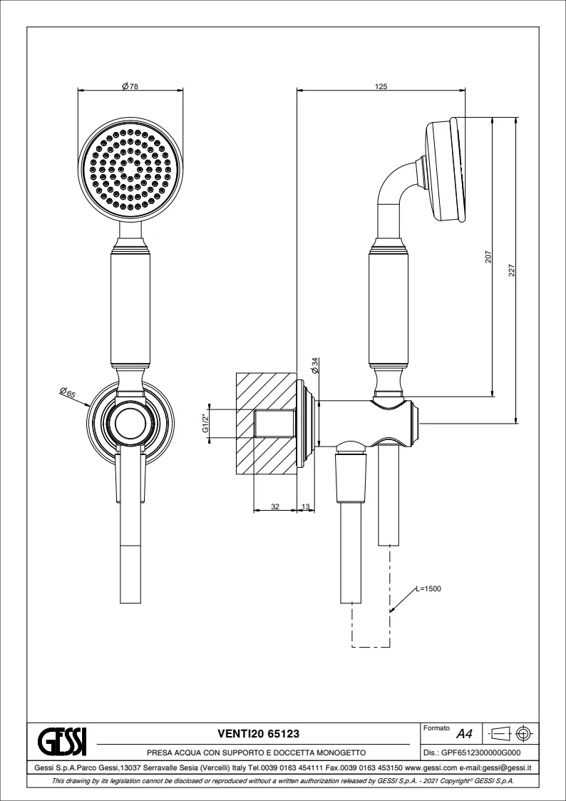 Гигиенический душ Gessi Venti20 65123.720 Nickel PVD