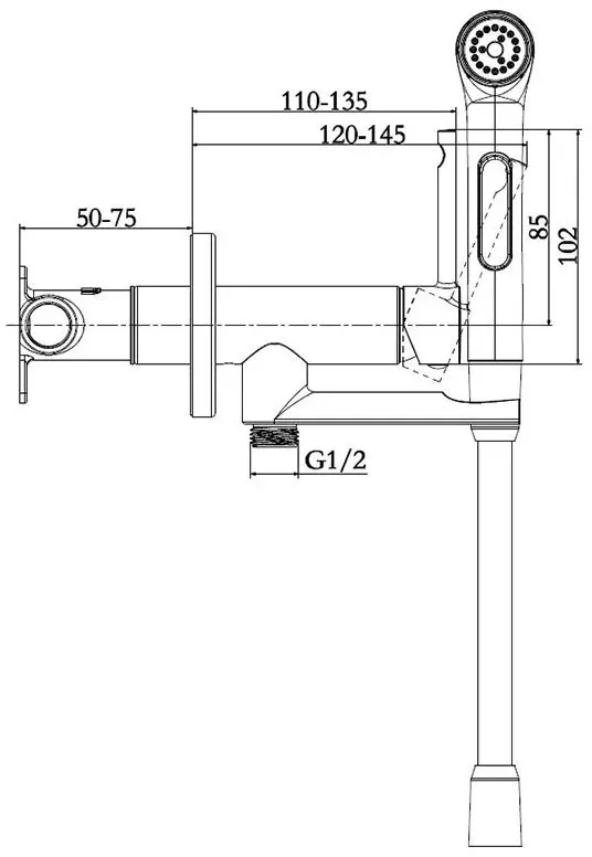E28317-BL ELATE 2.0 Комплект для гигиенического душа встроенный (смеситель + гигиеническая лейка + шланг), матовый черный