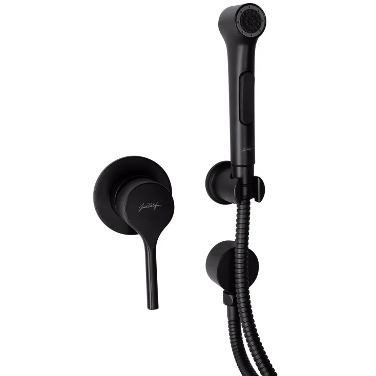 Гигиенический душ Elate французской компании Jacob Delafon станет превосходным вариантом для малогабаритного санузла. Он изготовлен из латуни, не подверженной негативному воздействию внешней среды. Пластиковая лейка оснащена эргономичной антискользящей кнопкой, что обеспечивает удобство управления подачей воды. Металлический шланг в двойной оплетке долговечен. Металлический шланг 120 см. Места соединений шланга с лейкой и смесителем оснащены поворотным конусом или специальными подшипниками, которые препятствуют перекручиванию шланга. Расход воды: 6 л/мин.