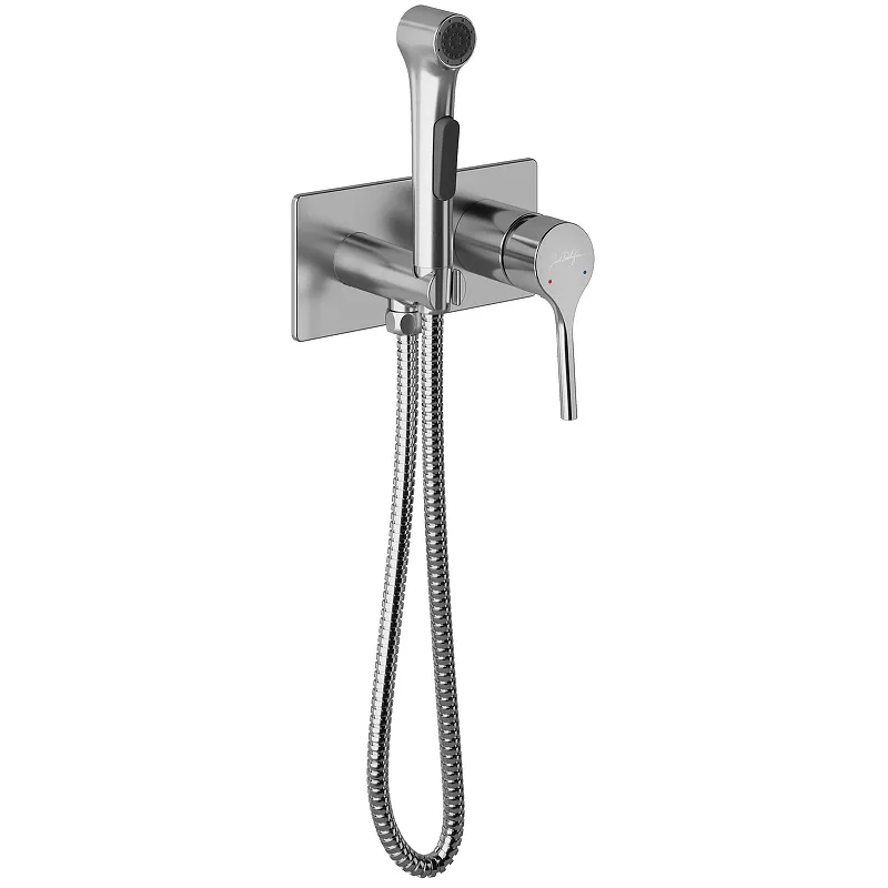 Гигиенический душ Elate французской компании Jacob Delafon станет превосходным вариантом для малогабаритного санузла. Он изготовлен из латуни, не подверженной негативному воздействию внешней среды. На хромированной поверхности не образуются разводы и потеки, а известковый налет легко удаляется при вытирании насухо. Изделие сохраняет свой глянец даже спустя долгое время эксплуатации. Пластиковая лейка оснащена эргономичной антискользящей кнопкой, что обеспечивает удобство управления подачей воды. Металлический шланг в двойной оплетке долговечен. Ручной душ из АБС-пластика с кнопкой открывания потока воды, 22 отверстия. Покрытие протестировано 48 часовой солевой камерой, хромированная отделка с 10-летней гарантией. Держатель для душа из металла с аквастопом. Панель из пластика 90x190 мм.