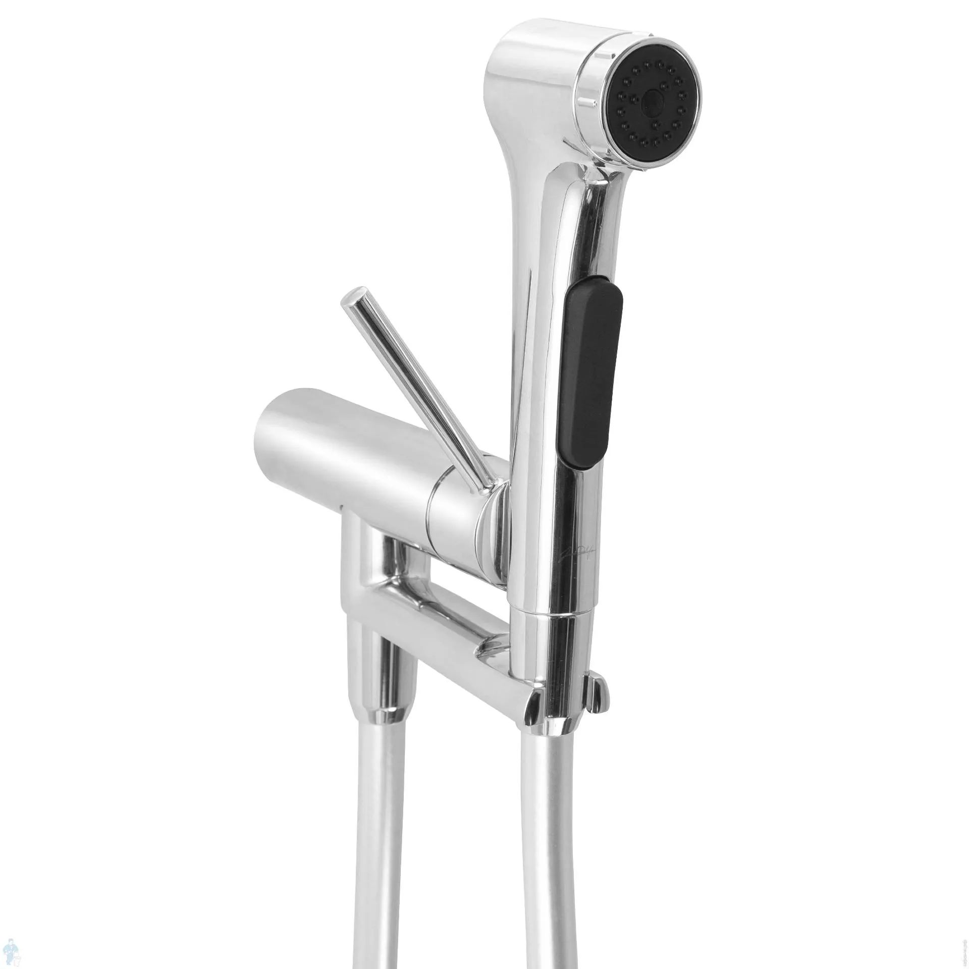 Гигиенический душ Jacob Delafon Elate E28317-CP со смесителем. Длина пластикового шланга 120 см. Места соединений шланга с лейкой и смесителем оснащены поворотным конусом или специальными подшипниками, которые препятствуют перекручиванию шланга. Расход воды: 6 л/мин. Размер лейки: 3.4 см.