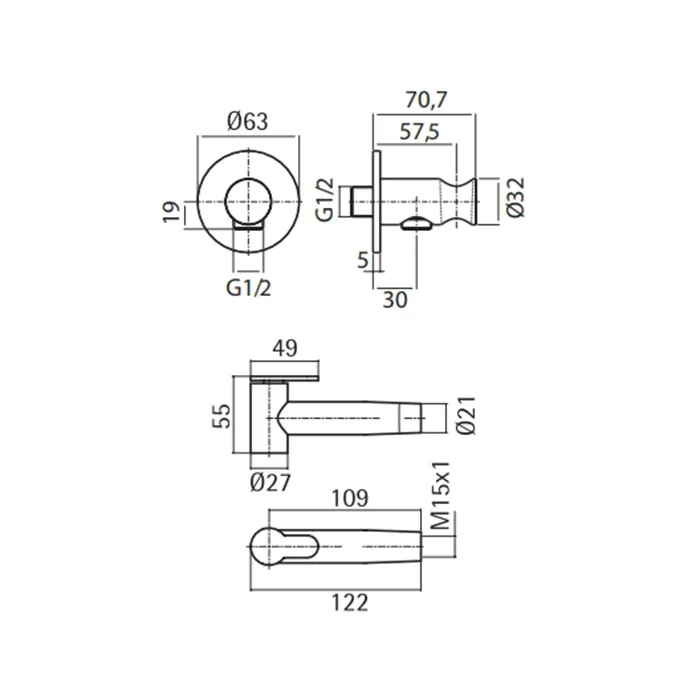 QuadroDesign Душевая программа ID022AS Гигиенический душ, цвет Brushed Stainless Steel