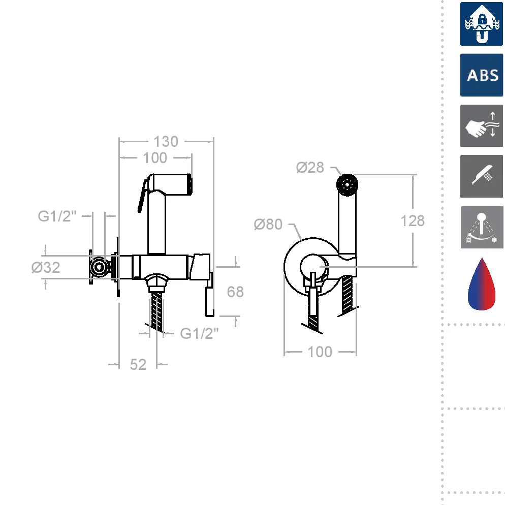 Корпус смесителя выполнен из качественной хромированной латуни и оснащен керамическим картриджем 25000-2 с плавной регулировкой температуры воды. Плавное движение рукояти позволяет легко достичь желаемой температуры, что делает использование гигиенического душа максимально комфортным.