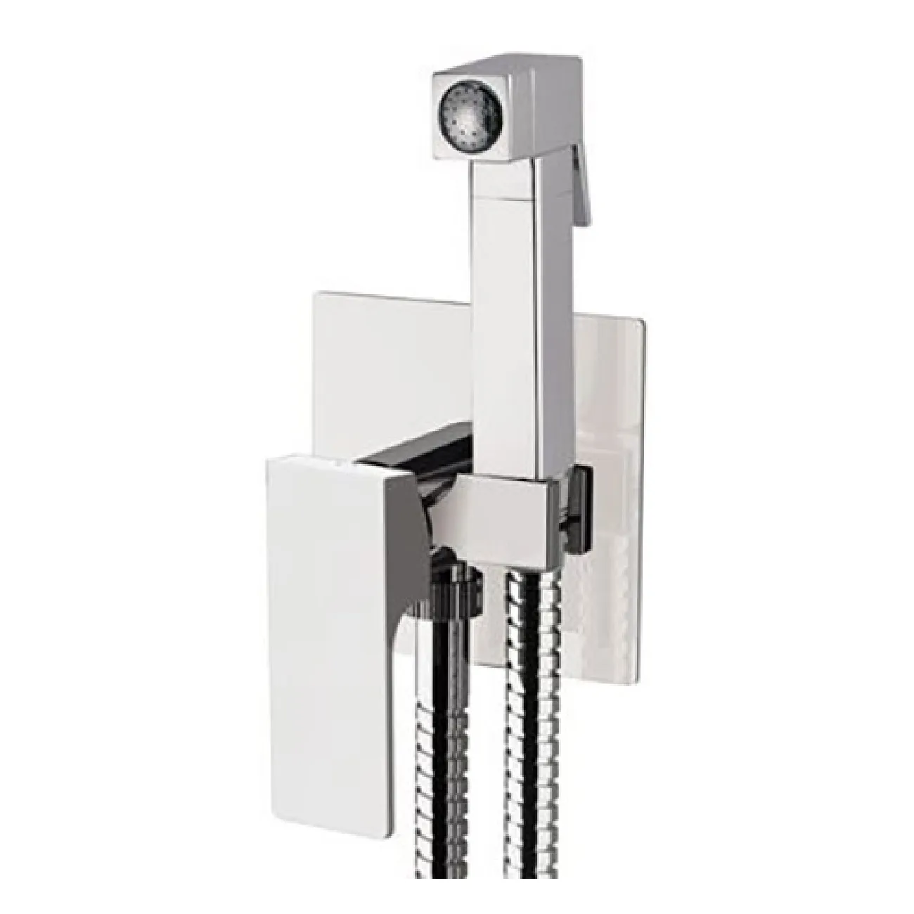 Комплект встраиваемого смесителя для душа-пистолета, серя absolute душ-пистолет арт. 332OS, душевой кронштейн – водозабор на пластине из хромированной латуни, гибкий шланг 120 см.
