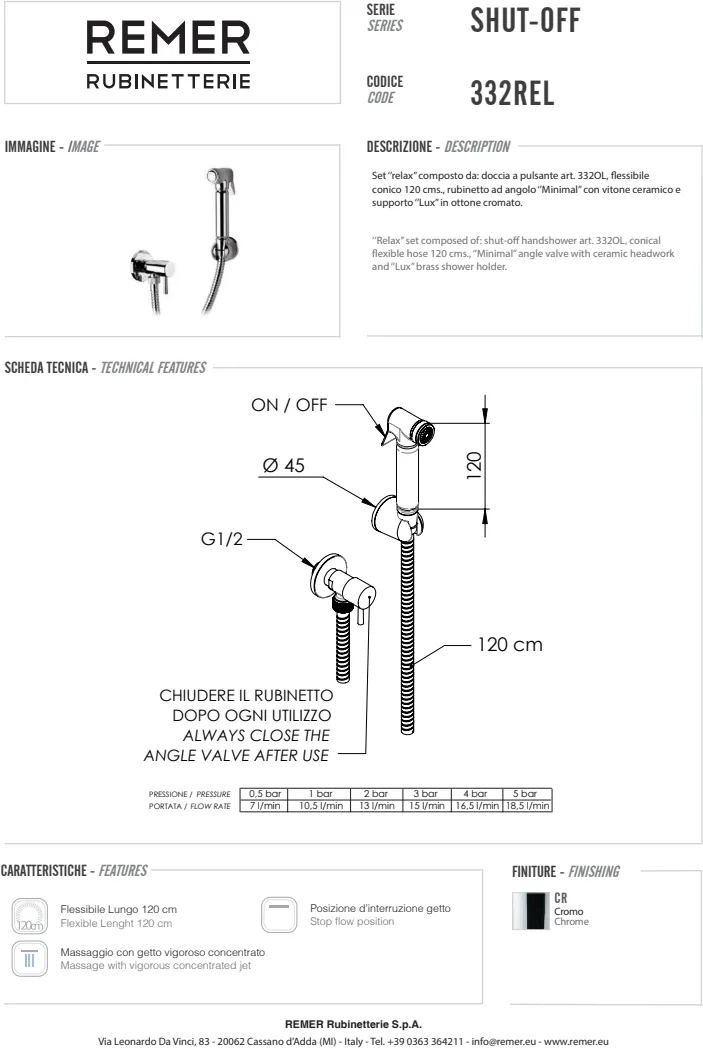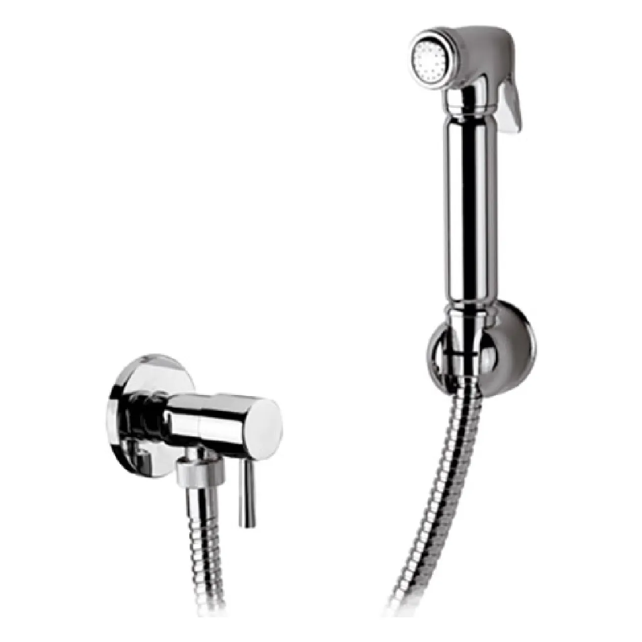 Комплект "relax" душ-пистолет арт. 332OL, шланг 120 см с одной конусной гайкой, угловой кран "Minimal" с керамической вентильной головкой и кронштейн "Lux", все из хром. латуни
