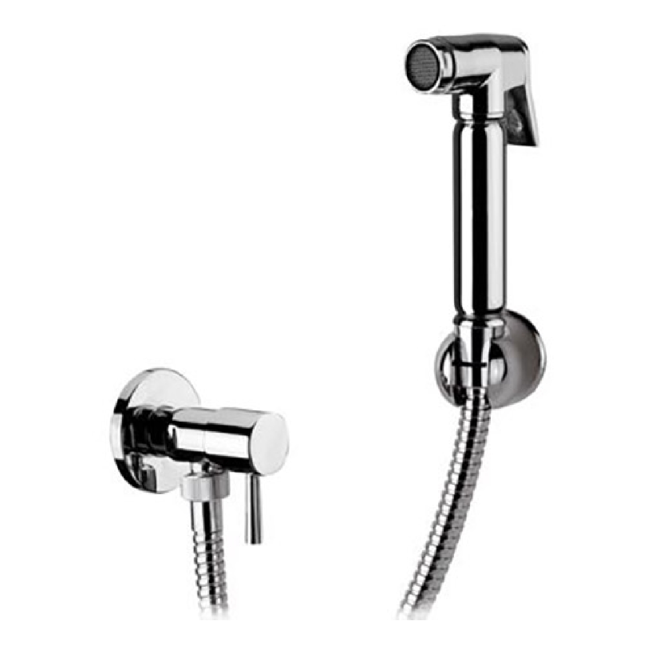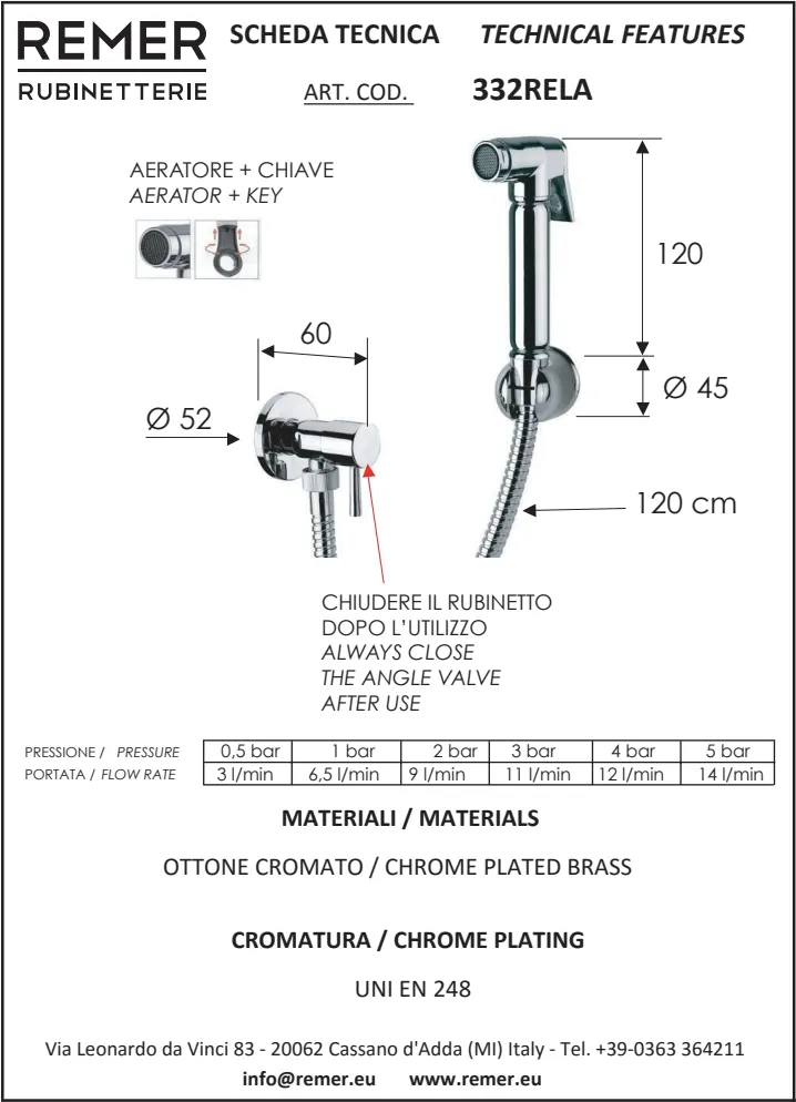 Комплект "relax" душ-пистолет арт. 332 OLA, шланг 120 см с одной конусной гайкой, угловой кран "Minimal" с керамической вентильной головкой и кронштейн "Lux", все из хром. латуни