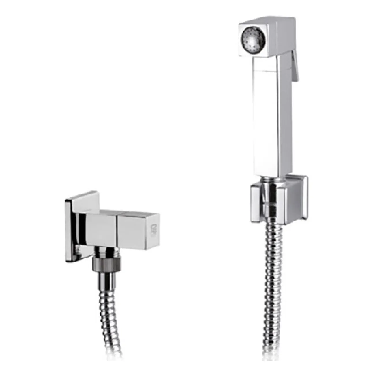 Комплект "relax sq" душ-пистолет «SQ» арт. 332OS, шланг 120 см с одной конусной гайкой, угловой кран "SQ" с керамической вентильной головкой и кронштейн 339 SOS, все из хром. латуни