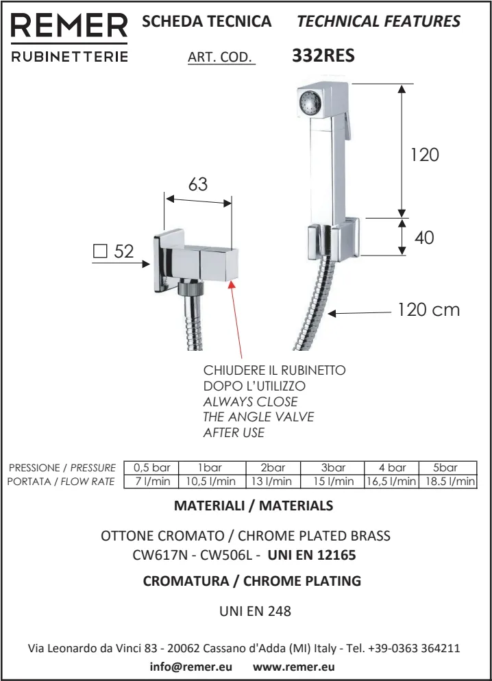 Итальянский бренд Remer Rubinetterie более 50 лет специализируется на выпуске смесителей, душевых систем и аксессуаров для ванной комнаты и кухни. Главная особенность продукции Remer — сочетание классического итальянского дизайна и современных технологий. В отличие от многих конкурентов, компания выпускает полный цикл изделий: от литейного производства латунных корпусов до хромирования и финальной сборки. Это обеспечивает стабильное качество, долговечность и оптимальную цену для европейской сантехники премиум-класса.