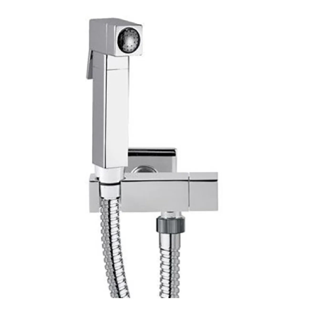 relax'' set composed by: shut-off handshower art. 332OS, conical flexible hose cm 120, c.p. brass squared angle valve art. 336S with shower holder.