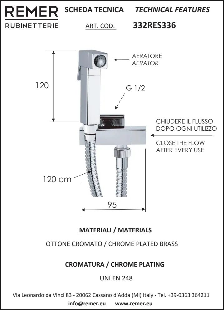 Гигиенический душ Remer с краном хром (CR) 332RES336