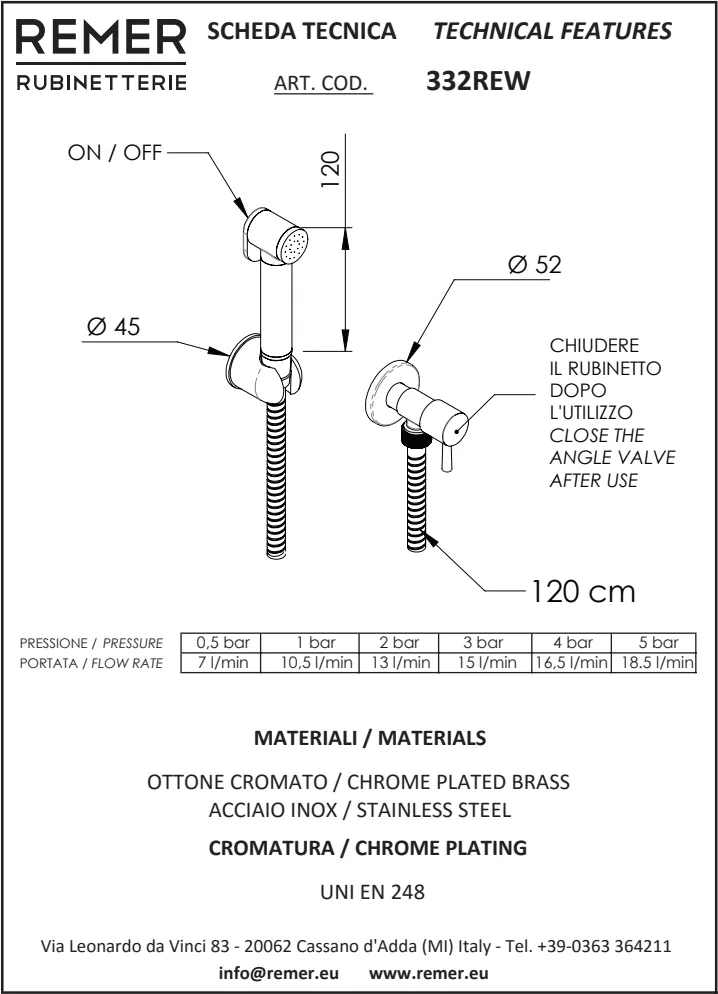 Итальянский бренд Remer Rubinetterie более 50 лет специализируется на выпуске смесителей, душевых систем и аксессуаров для ванной комнаты и кухни. Главная особенность продукции Remer — сочетание классического итальянского дизайна и современных технологий. В отличие от многих конкурентов, компания выпускает полный цикл изделий: от литейного производства латунных корпусов до хромирования и финальной сборки. Это обеспечивает стабильное качество, долговечность и оптимальную цену для европейской сантехники премиум-класса.