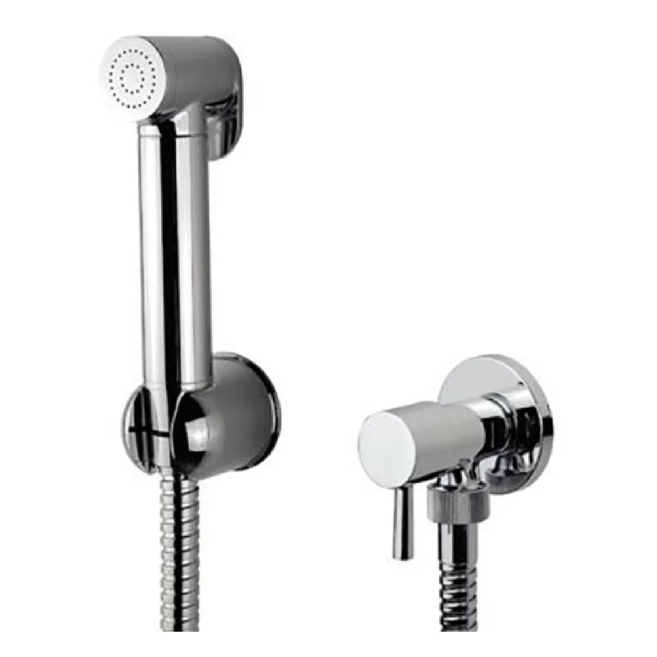 Комплект "relax" душ-пистолет арт. 332OW, шланг 120 смиз нержавеющей стали, с одной конусной гайкой, угловой кран "Minimal" с керамической вентильной головкой и кронштейн "Lux", все из хром. латуни.
